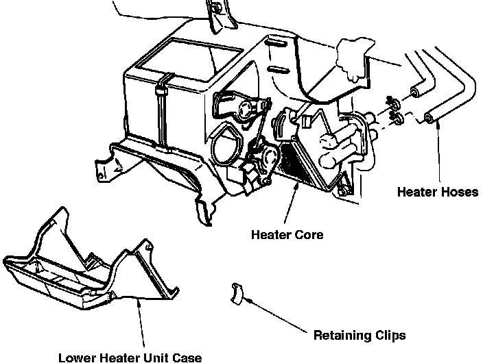 6. Remove lower heater unit case retainer clips, then the lower case.