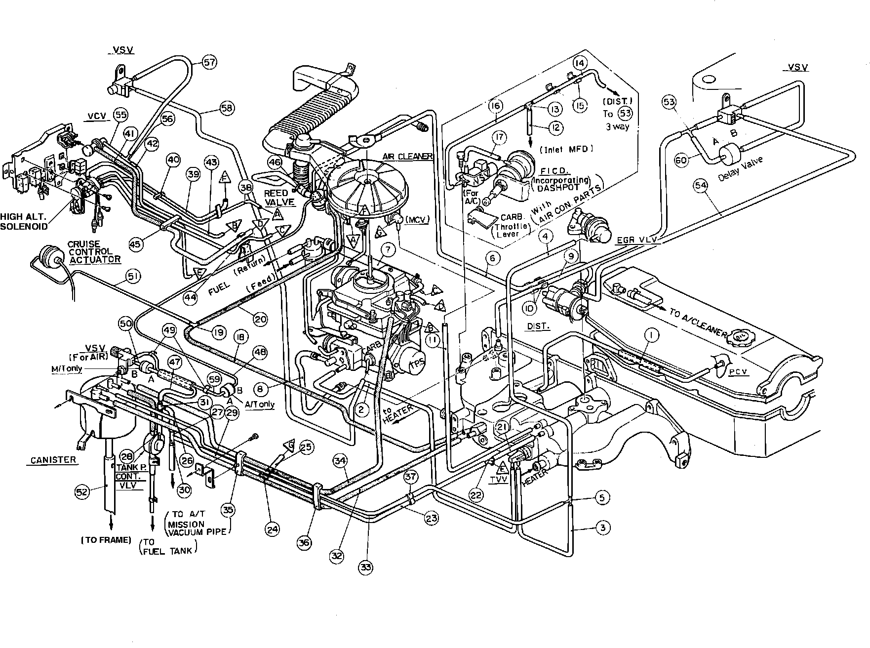 50. Hose; Vacuum Delay Valve - Vacuum Switching Valve (M/T Only)