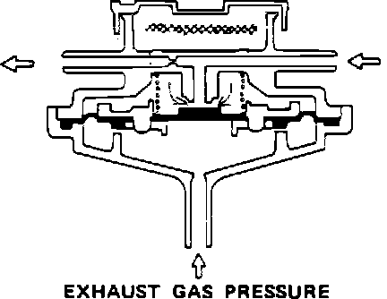 The exhaust backpressure transducer regulates the vacuum signal to the EGR valve. When the exhaust pressure is low, the transducer opens a small air bleed passage allowing some air into the vacuum circuit. This reduces the vacuum signal to the EGR valve and the valve closes slightly. If the exhaust pressure is very low the EGR valve will close completely. When exhaust pressure is high, the air bleed passage is closed and control vacuum is directly applied to the EGR valve diaphragm.