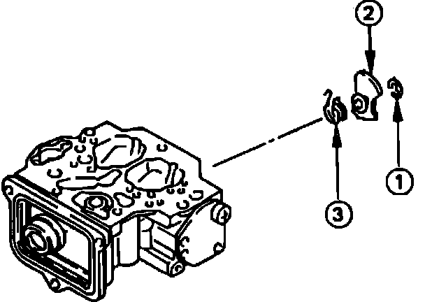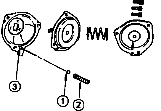22. Remove diaphragm chamber cover, diaphragm spring and diaphragm. Do not allow ball (1) and spring (2) to fall from diaphragm chamber vacuum hole (3) during disassembly procedure.