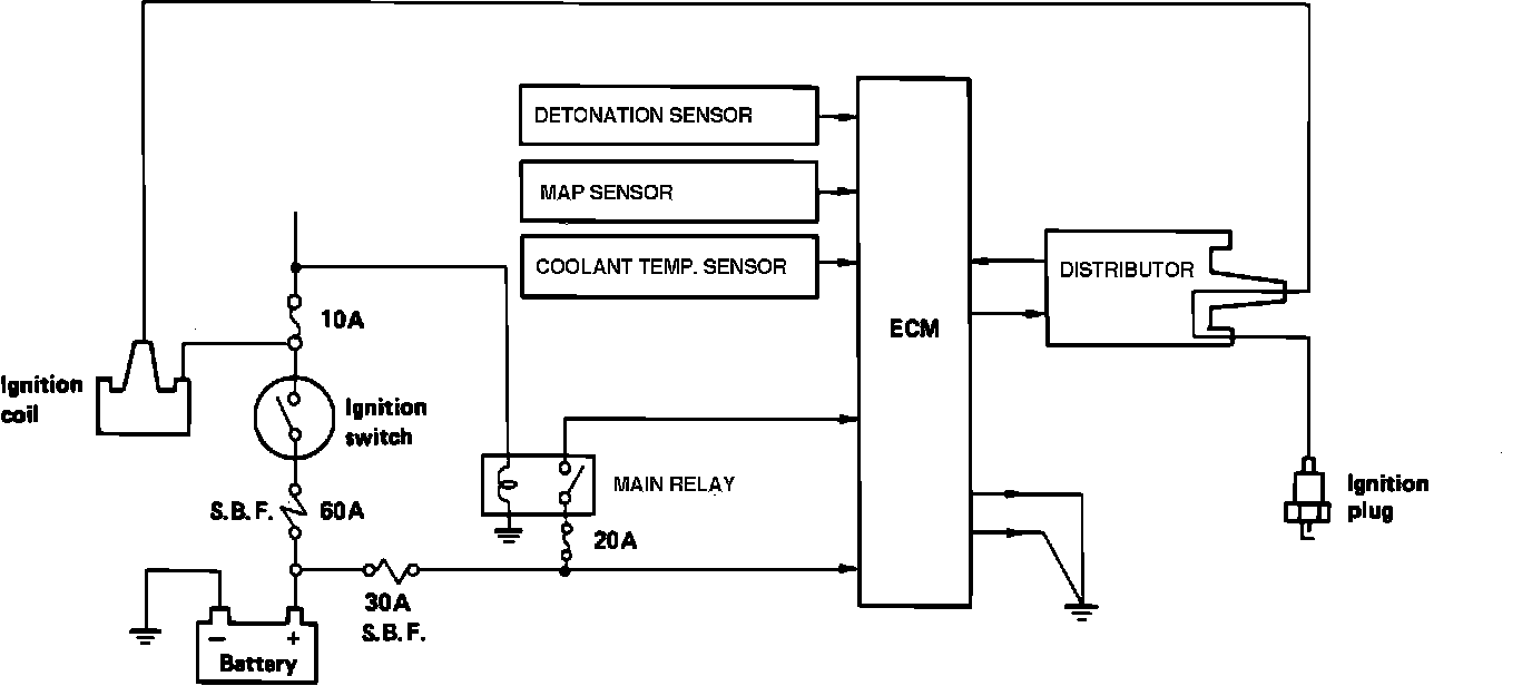 Electronic Spark Timing (EST) is ECM controlled. The ECM monitors information from various sensors, computes the desirable spark timing and signals the distributor when timing changes are required. The distributor does not contain centrifugal advance weights, springs or a vacuum advance unit. Base timing is adjustable. If it is not correctly set, the entire spark advance curve will be off. The ECM utilizes information from the MAP, coolant temperature and knock sensors and engine rpm to calculate spark advance.