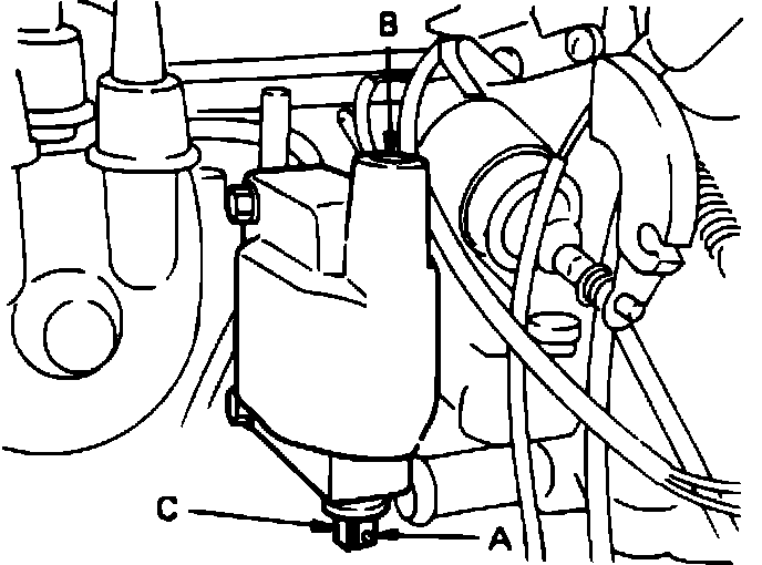 2. Check resistance of primary coil (A-C) and secondary coil (A-B) as shown in Fig. 5. Primary coil resistance should be 0.9 ohms. Secondary coil resistance should be 9,400 ohms.