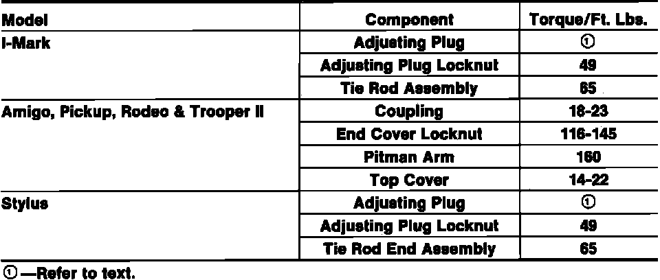 Tightening Specifications: