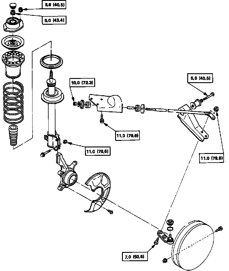 5. Reverse procedure to install, using new self-locking nut. Torque tension rod-to-body nut to 50 ft. lbs. and tension rod-to-control arm bolts to 79.6 ft. lbs.