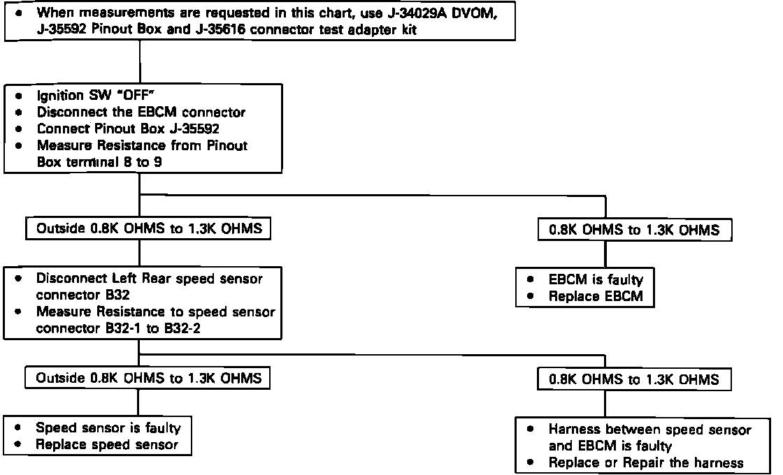 Fig. 10 Code 14, left rear speed sensor circuit.: