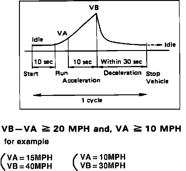 2. Accelerate vehicle from a standing start. Exceed 10 mph during the first 10 seconds and continue accelerating to at least 20 mph faster than the initial speed.