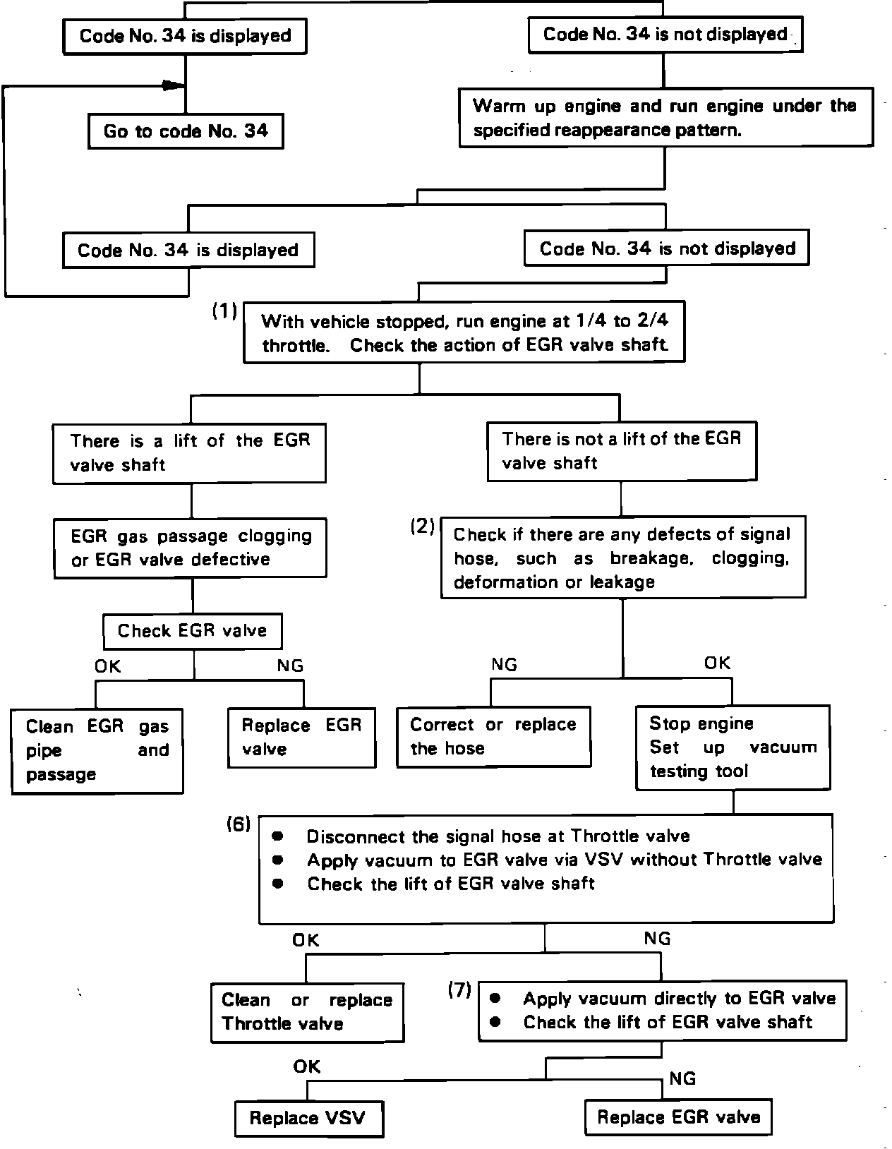 2. Check for signal hose problems between these components: Throttle valve, VSV, EGR valve.