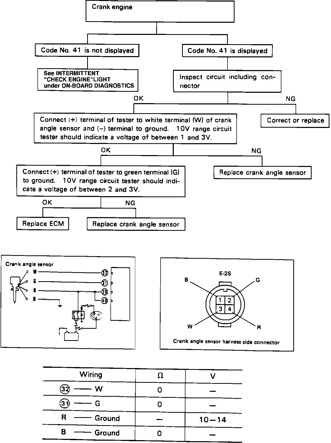 1. Disconnect crank angle sensor harness at distributor and 24 pin connector at ECM.