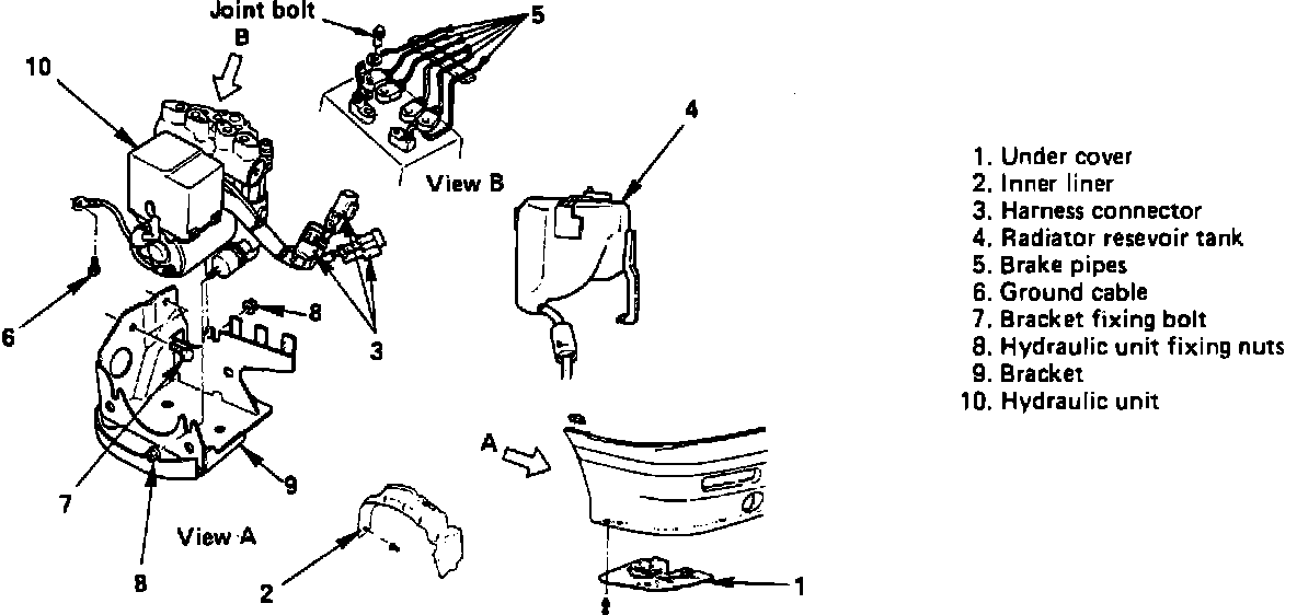 6. Remove bracket fixing bolt, then hydraulic unit fixing nuts.