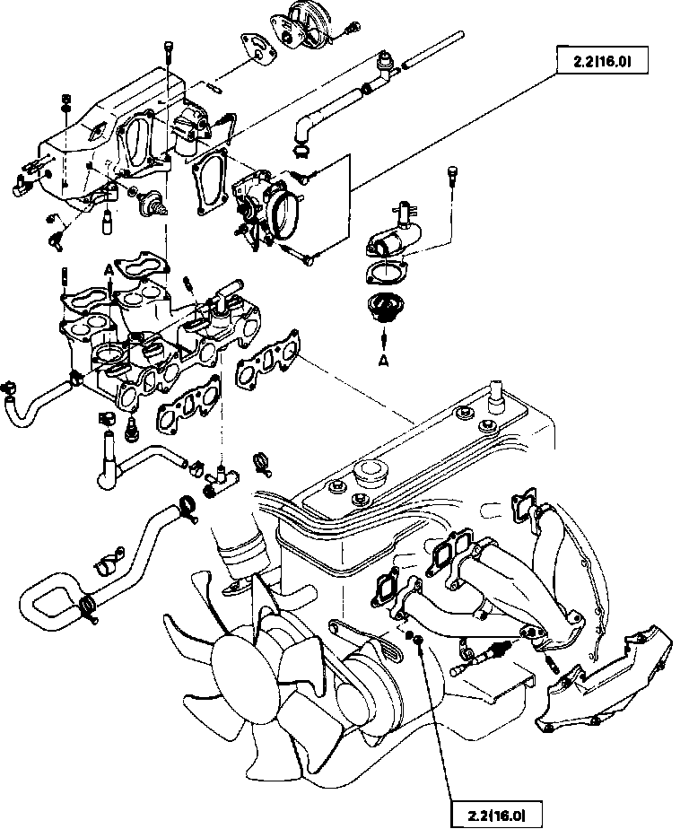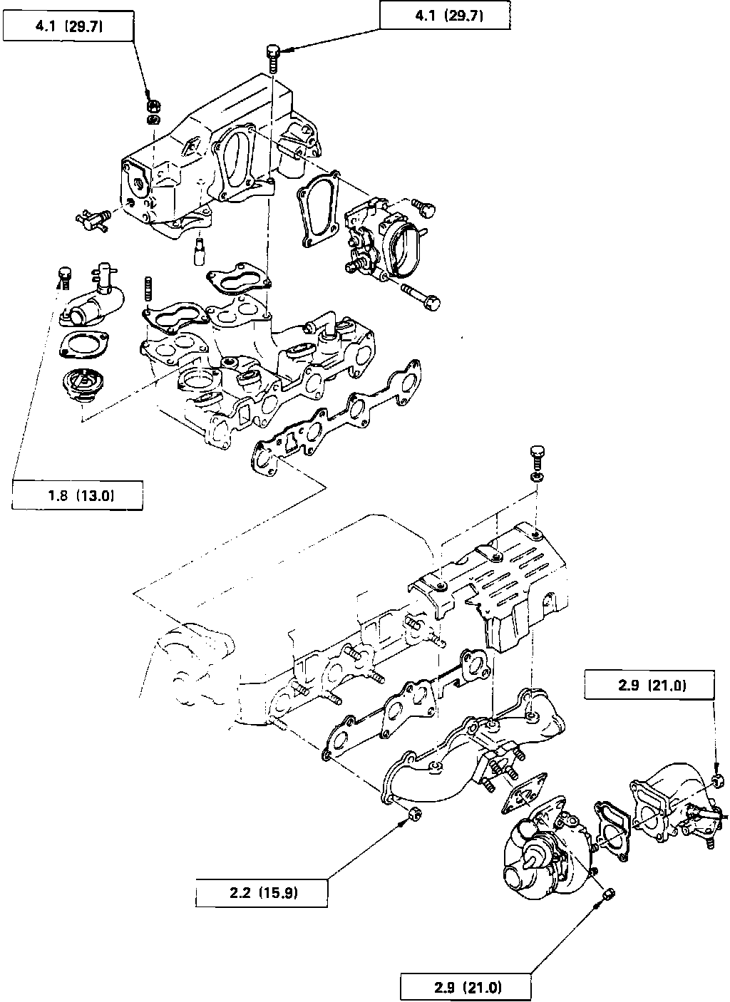 Fig. 2 Replacement of intake & exhaust manifolds. Non-turbocharged (Part 2 of 2):