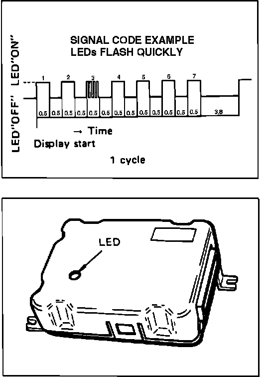 1. With ignition switch "ON," codes 2 and 6 (stored in memory) are displayed.