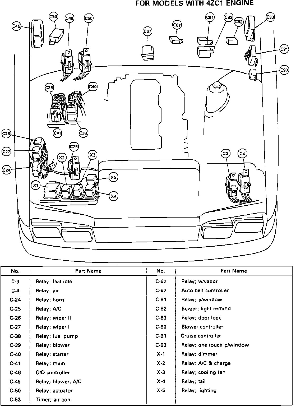 Relay Locations (4ZC1 Engine).: