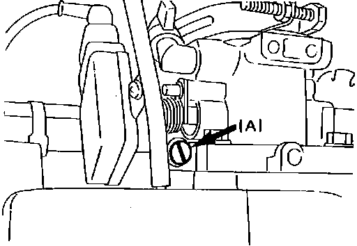 Start engine and check idle speed. If incorrect, adjust idle speed screw "A" on throttle body until engine idles at 900 rpm.