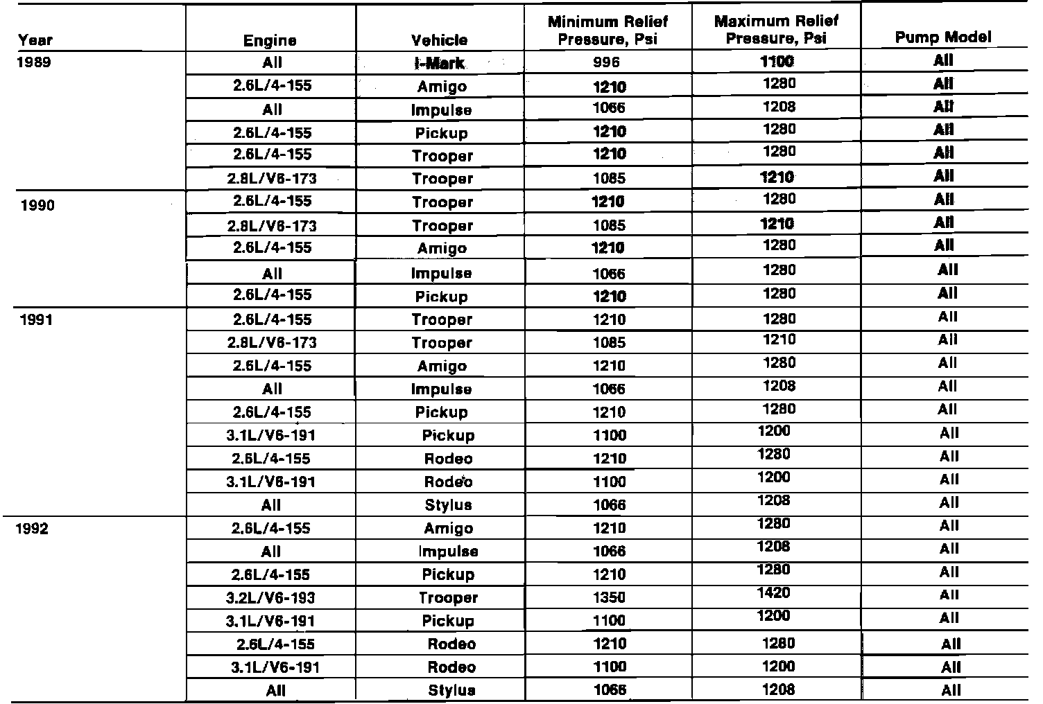 Power Steering Pressure Specifications: