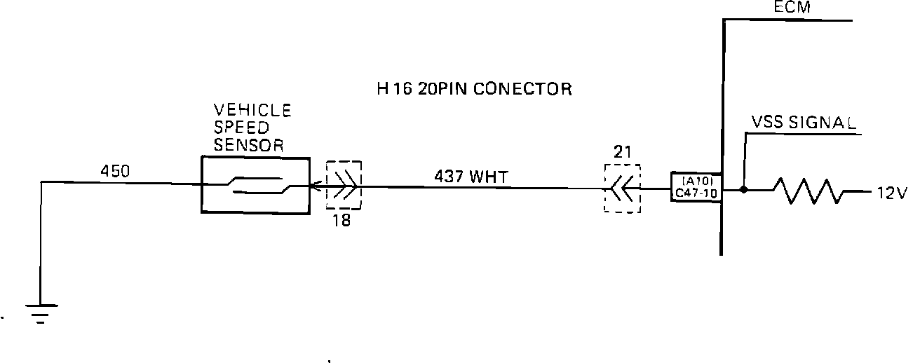 Vehicle speed information is provide to the ECM by the vehicle speed sensor, which alternately grounds CKT 347 located in the meter when the drive wheel are turning. this pulsing action takes place 4096 time per mile, and the ECM will calculate vehicle speed based on the time between pulses.