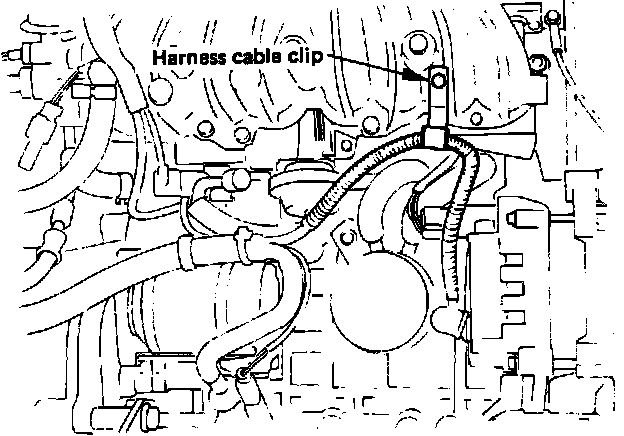 6. Disconnect induction control vacuum hose, generator cable harness clip, common chamber bracket and engine hanger from common chamber.