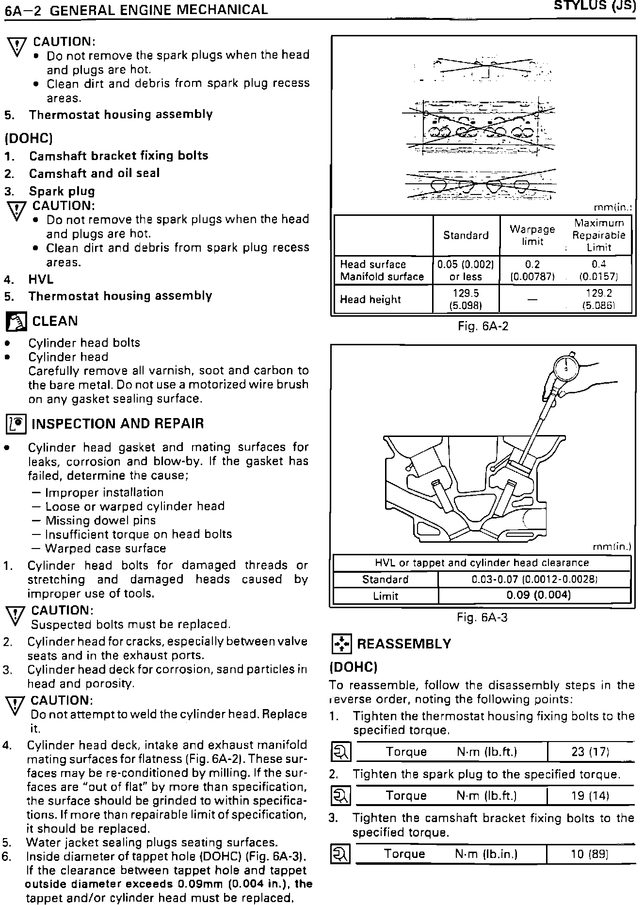 IMPULSE (JI) AND STYLUS (JS) CYLINDER HEAD SPECIFICATIONS
