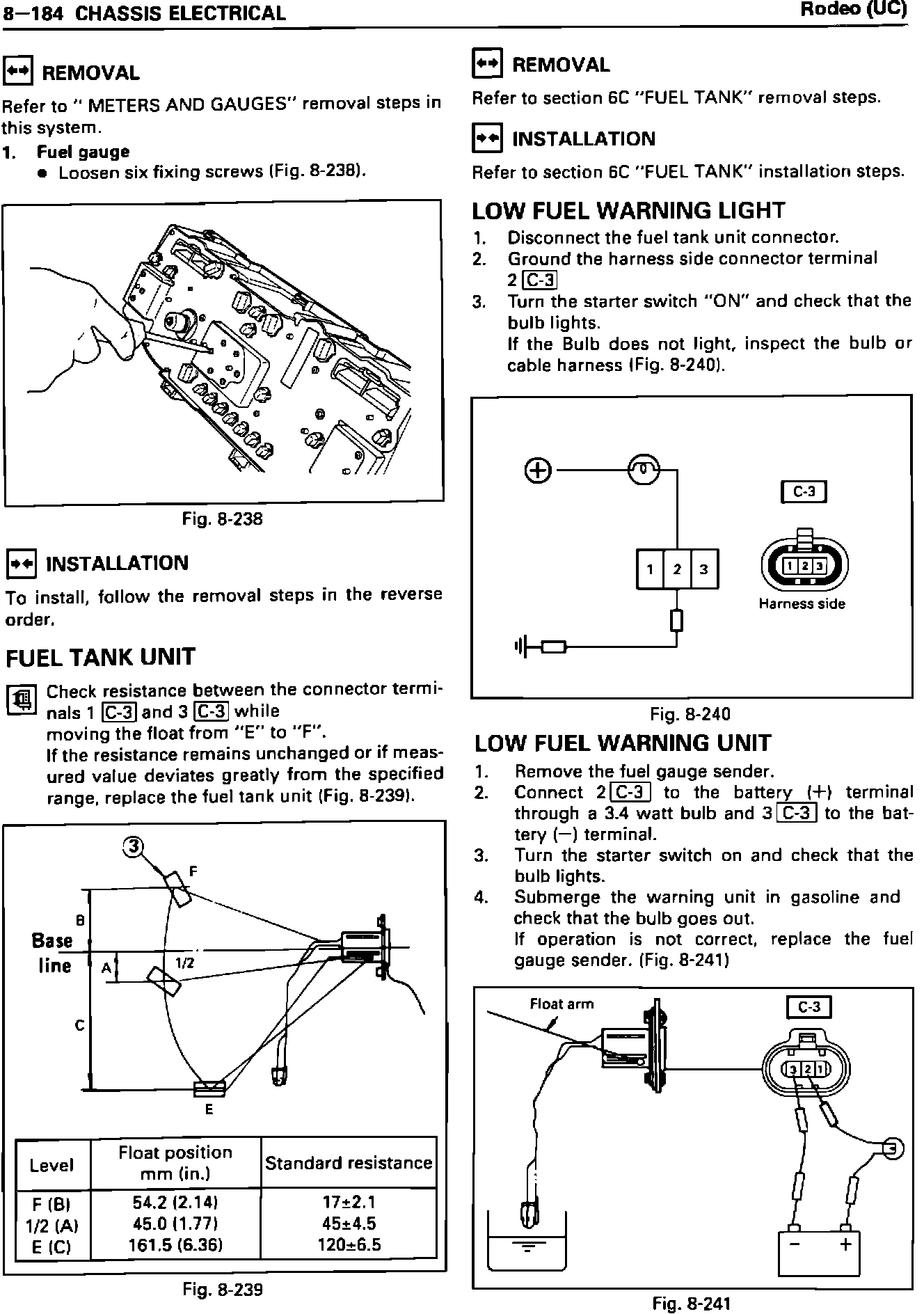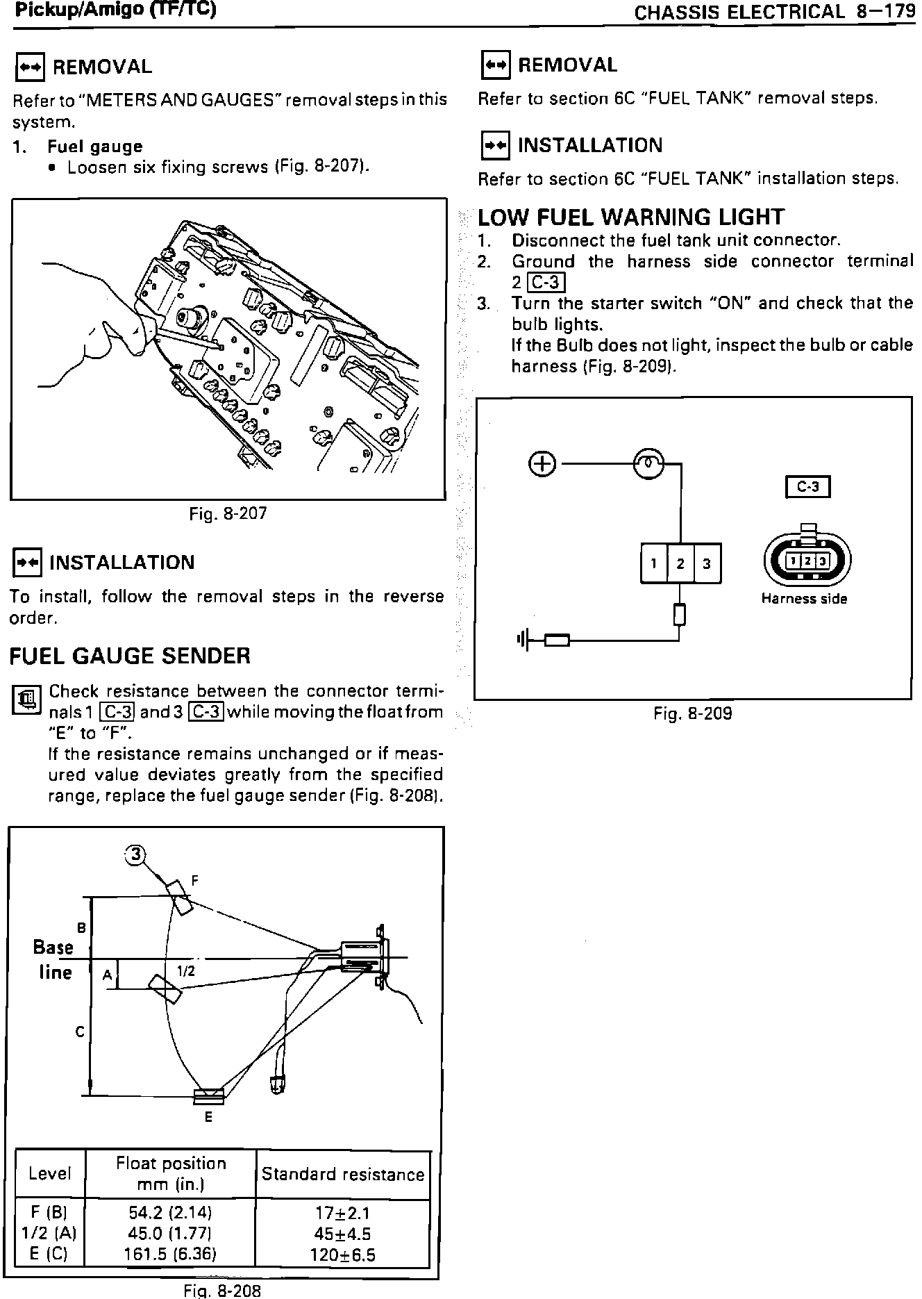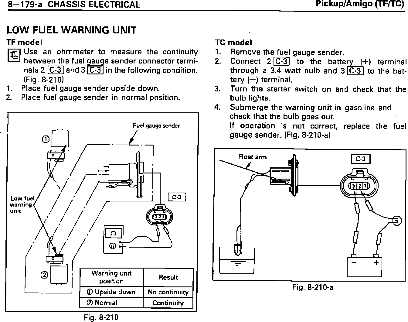 LOW FUEL WARNING UNIT INSPECTION
