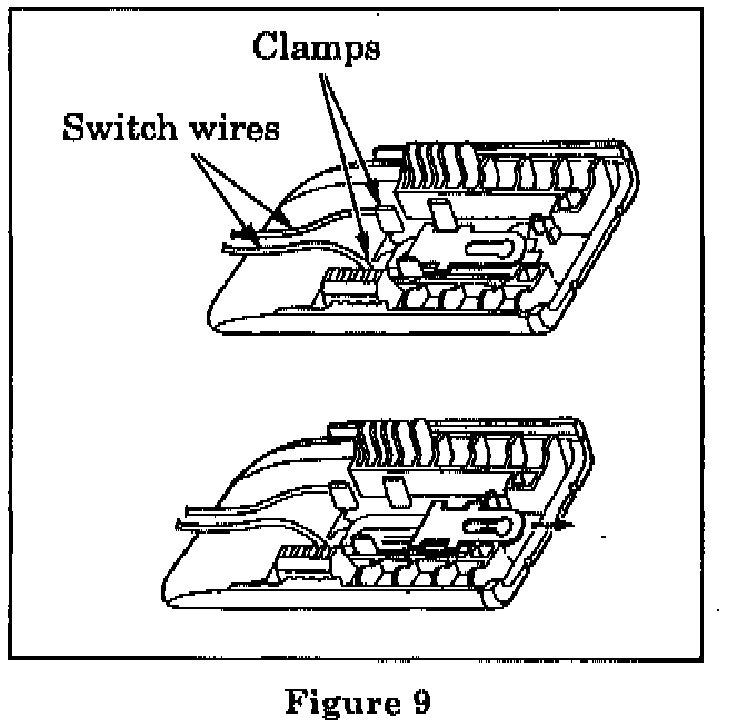 Press the switch wires into the clamps and slide the switch upwards to its original position (Figure 9).