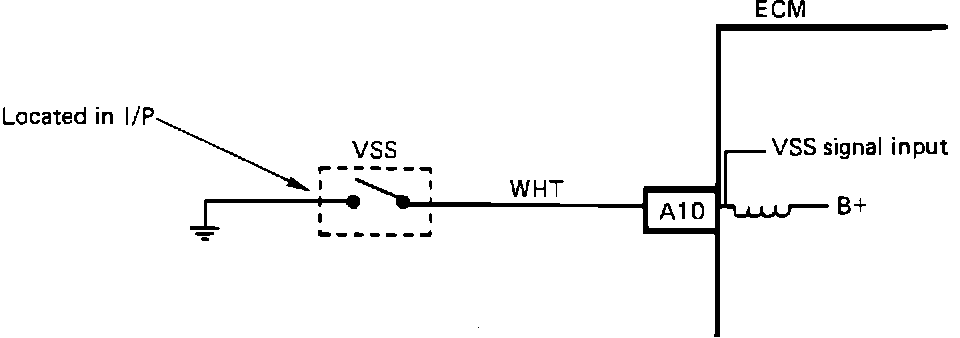 Vehicle speed information is provide to the ECM by the vehicle speed sensor, which alternately grounds the WHT wire located in the meter when the drive wheel are turning. this pulsing action takes place 4096 time per mile, and the ECM will calculate vehicle speed based on the time between pulses.