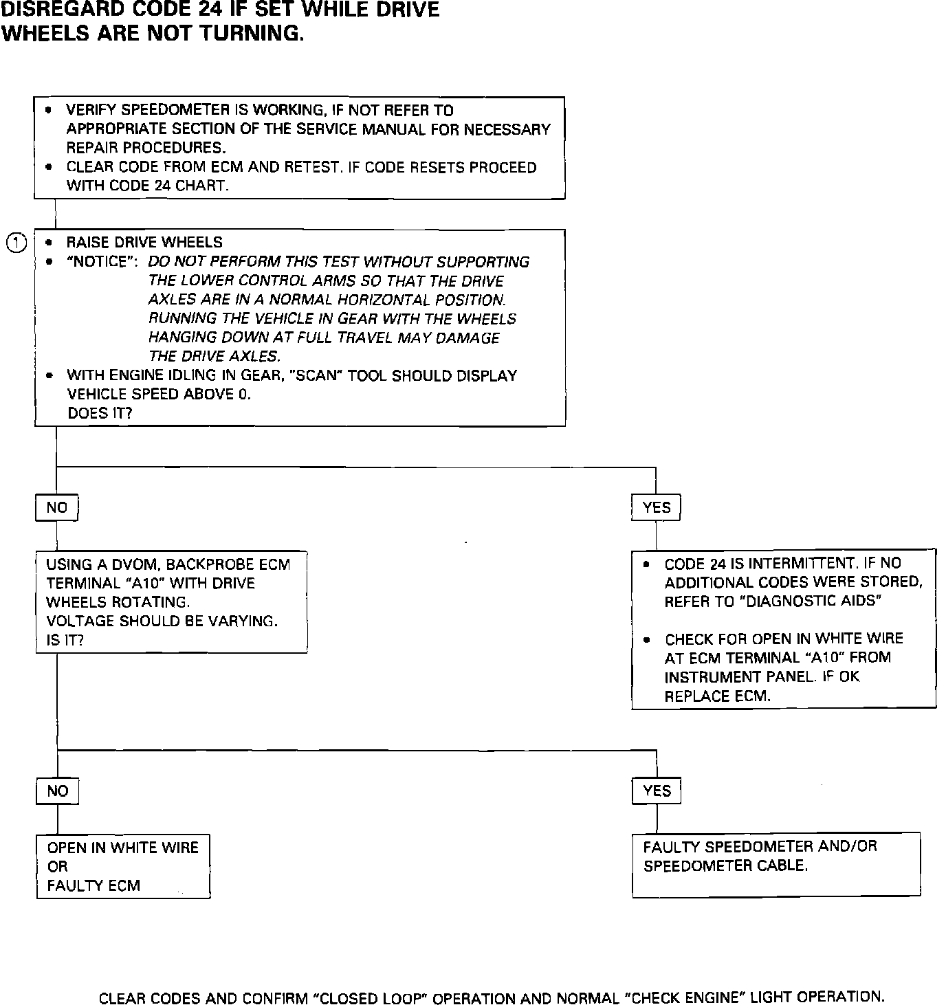 These conditions are met during a road load deceleration. Disregard Code 24 that sets when drive wheels are not turning.