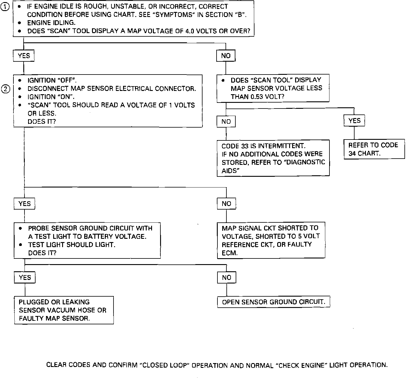DTC 33 Diagnostic Chart Hi Voltage/Lo Vacuum Indicated From MAP Sensor: