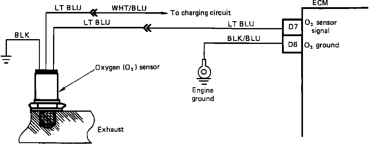 he ECM supplies a voltage of about 0.45 volt between terminals "D6" and "D7" of the ECM (If measured with a 10 Meg ohm digital voltmeter, this may read as low as 0.32 volt.) The O2 sensor varies the voltage within a range of about 1 volt, if the exhaust is rich, down to about 0.10 volt, if exhaust is lean. The sensor is like an open circuit and produces no voltage when it is below 360°C (600°F). An open sensor circuit, or cold sensor, causes "OPEN LOOP" operation.