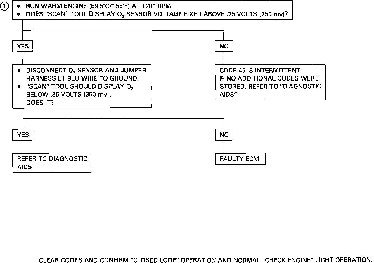 1. Code 45 is set, when the 02 sensor signal voltage is fixed above 0.75 (750 mV) and the following: