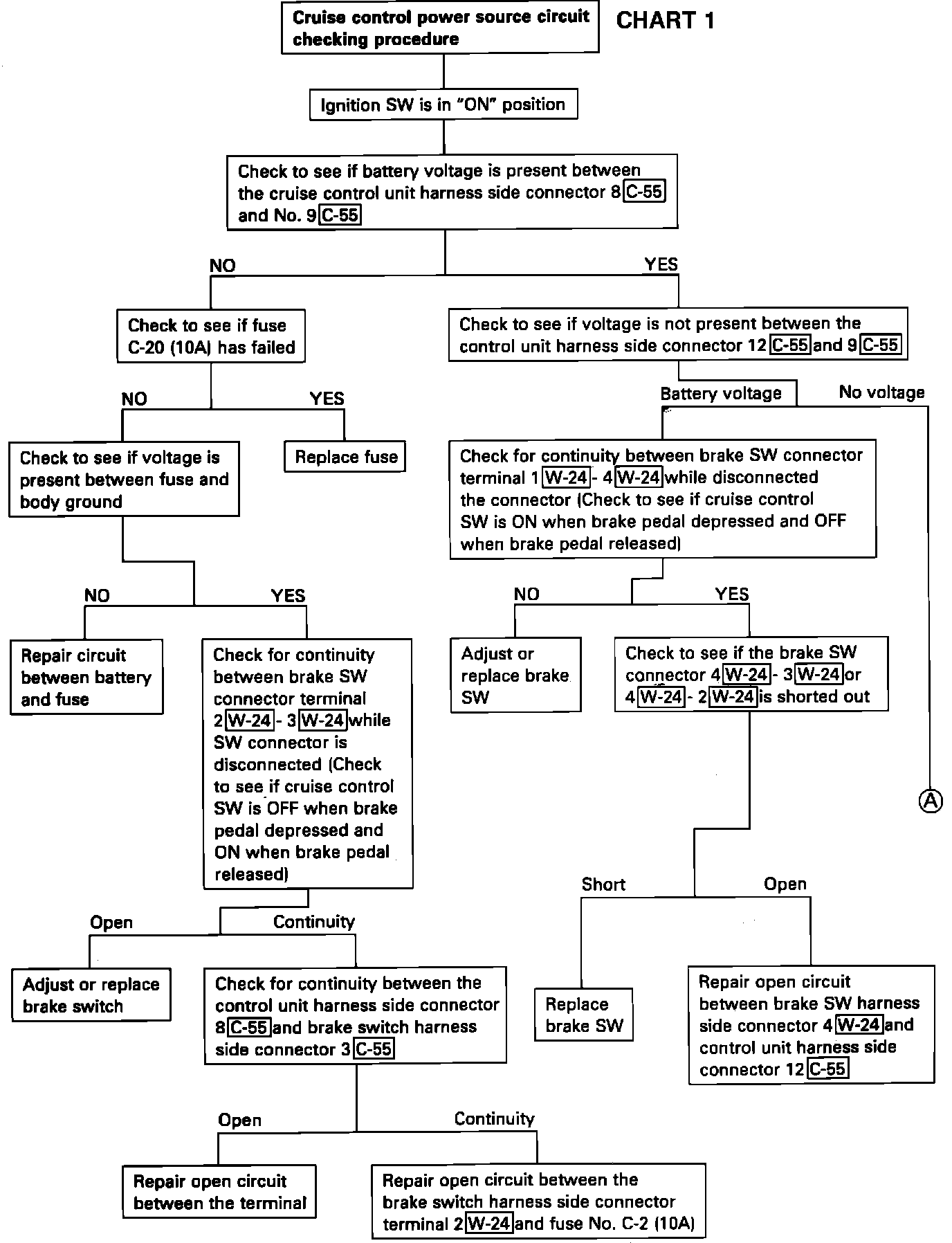 Chart 1, Cruise Control Power Source Circuit Check Procedure