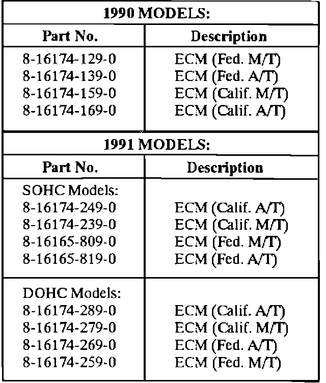 Some affected vehicles may experience low or rough idle immediately following a deceleration. In severe cases, the low idle may result in a stall. To eliminate this condition, a new calibration ECM is available from American Isuzu Parts Distribution Network (AIPDN). See "Parts Information" section of this Service Bulletin.