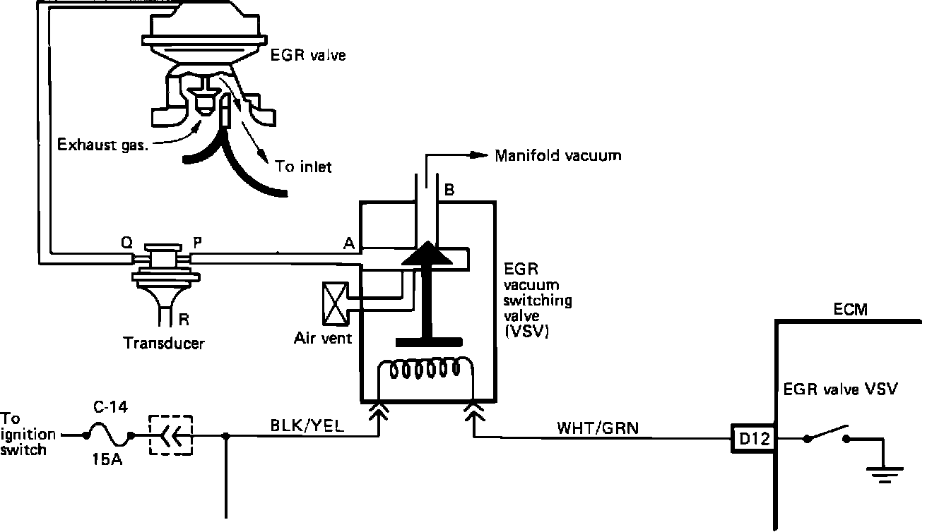 A properly operating EGR system will directly affect the air/fuel requirements of the engine. Since the exhaust gas introduced into the air/fuel mixture is an inert gas (contains very little or no oxygen), less fuel is required to maintain a correct air/fuel ratio. If the EGR system were to become inoperative, the inert exhaust gas would be replaced with air and the air/fuel mixture would be leaner. The ECM would compensate for the lean condition by adding fuel, resulting in higher block learn values. The engine control system operates within two block learn cells, a closed throttle cell and an open throttle cell. Since EGR is not sued at idle, the closed throttle cell would not be affected by EGR system operation. The open throttle cell is affected by EGR operation and when the EGR system is operating properly, the block learn values in both cells should be close to being the same. If the EGR system was inoperative, the block learn value in the open throttle cell would change (become higher to compensate for the resulting lean system, but the block learn value in the closed throttle cell would not change. This change or difference in block learn values is used to monitor EGR system performance.