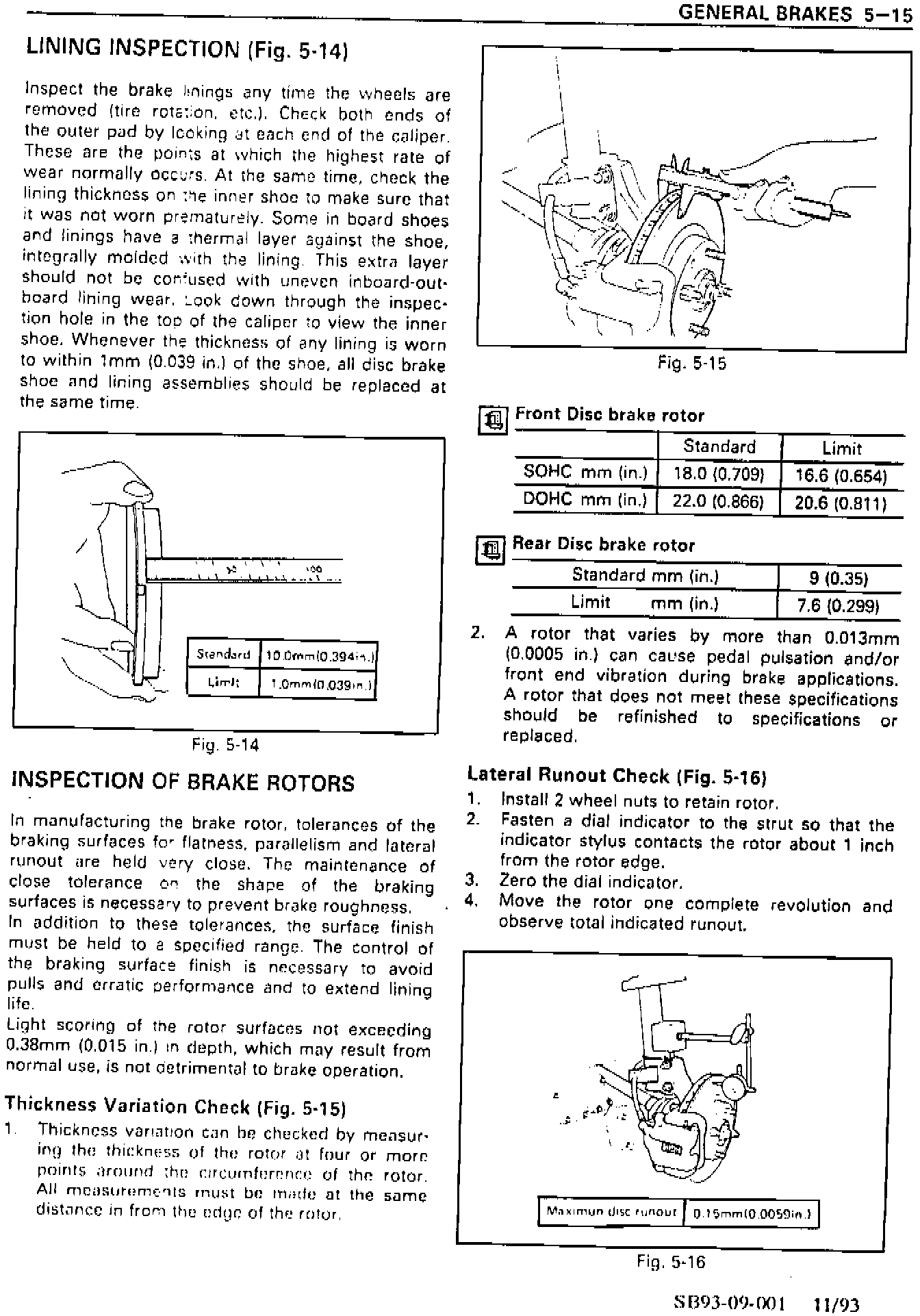 Front brake rotor specifications for affected vehicles are incorrectly, shown in the Workshop Manuals: