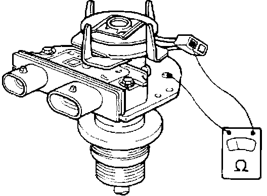 - Using an ohm meter, check the resistance between each pickup coil terminal and distributor housing.