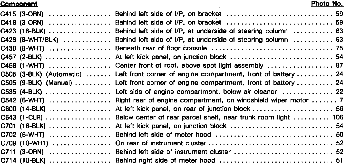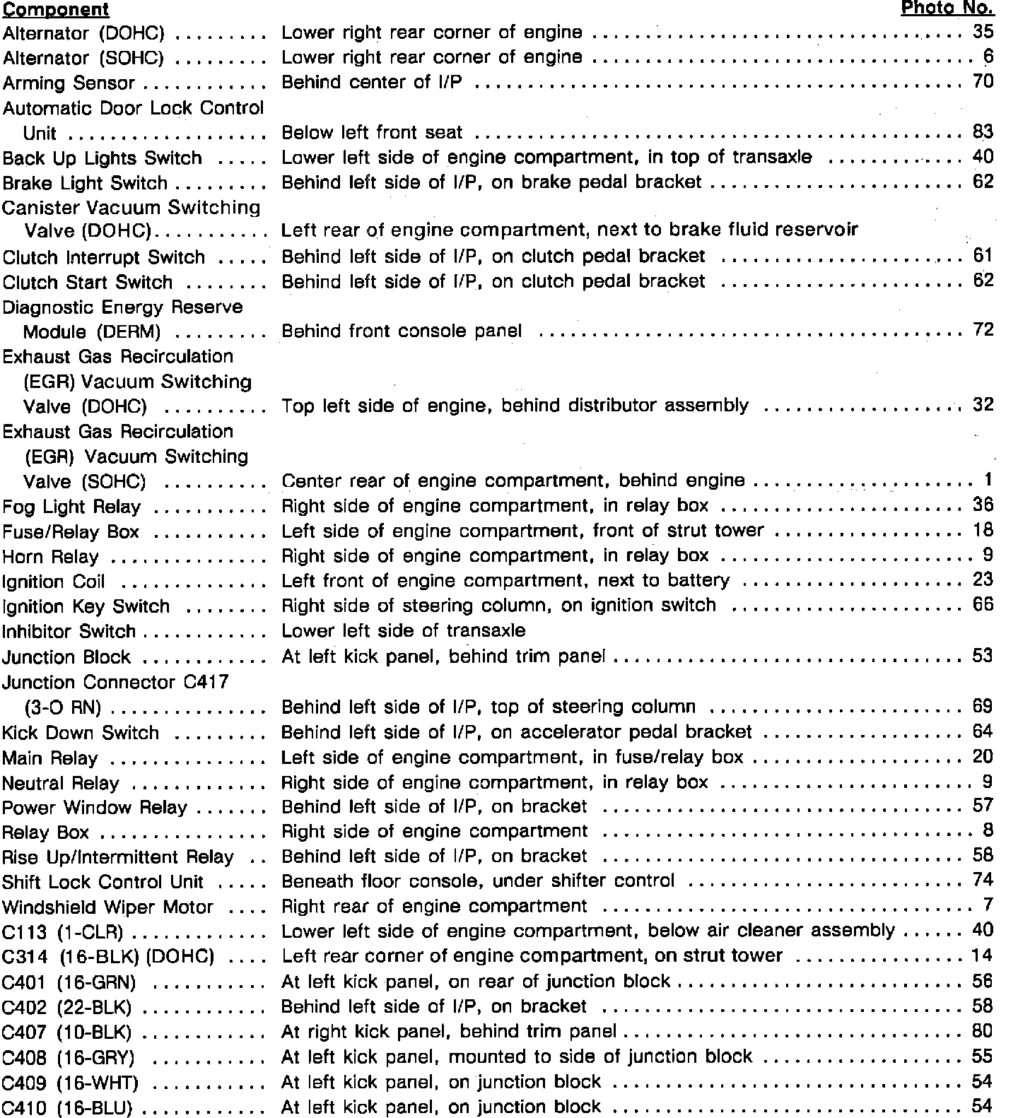 COMPONENT LOCATION INDEX