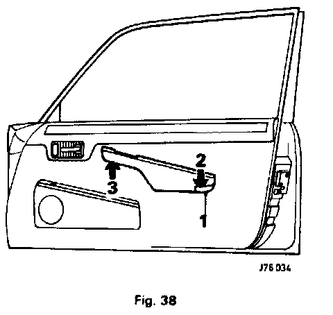 - Remove the screw from beneath front of armrest (3, Fig. 38) and slide top portion of armrest towards rear of door.