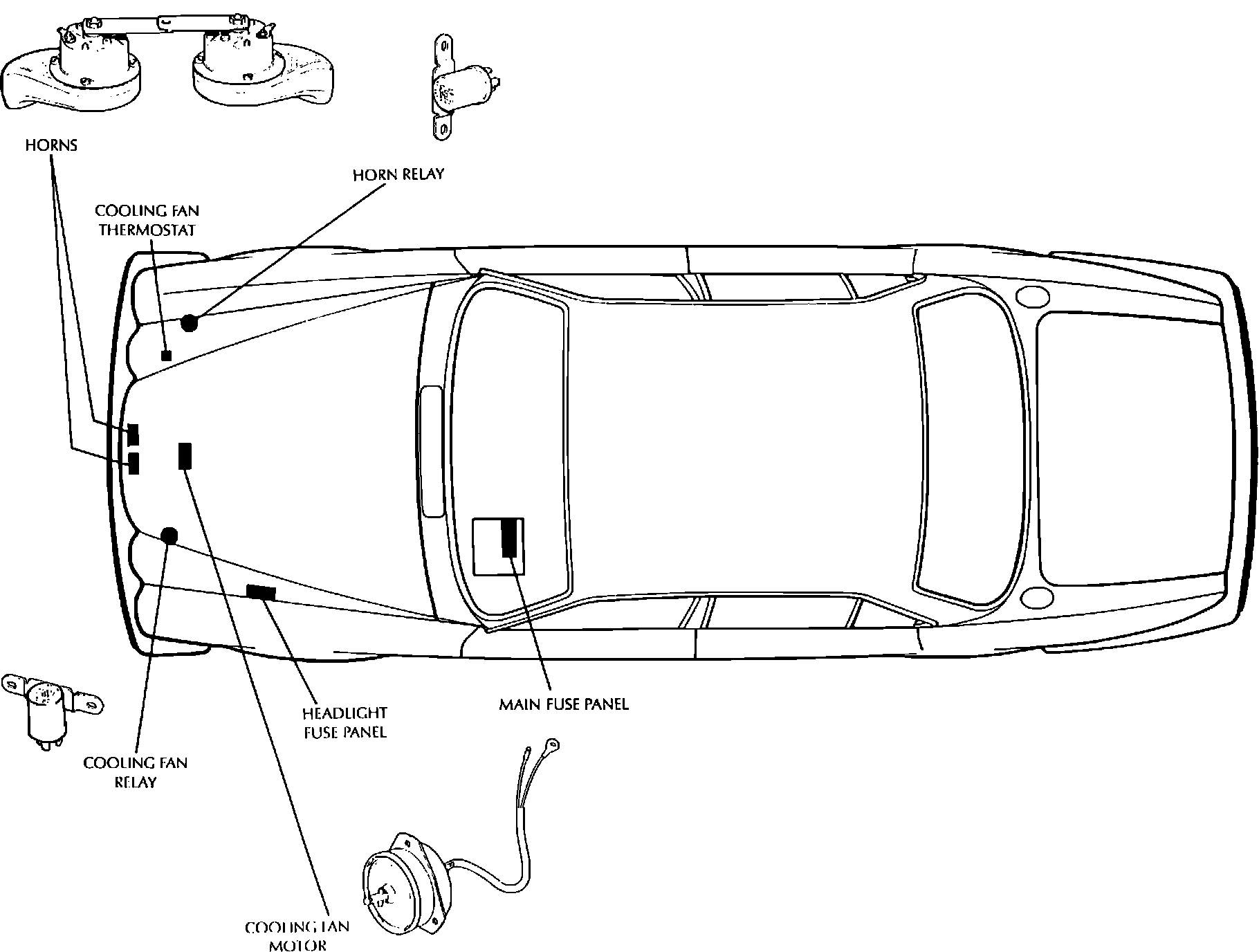 Horns & Cooling Fan Component Locations: