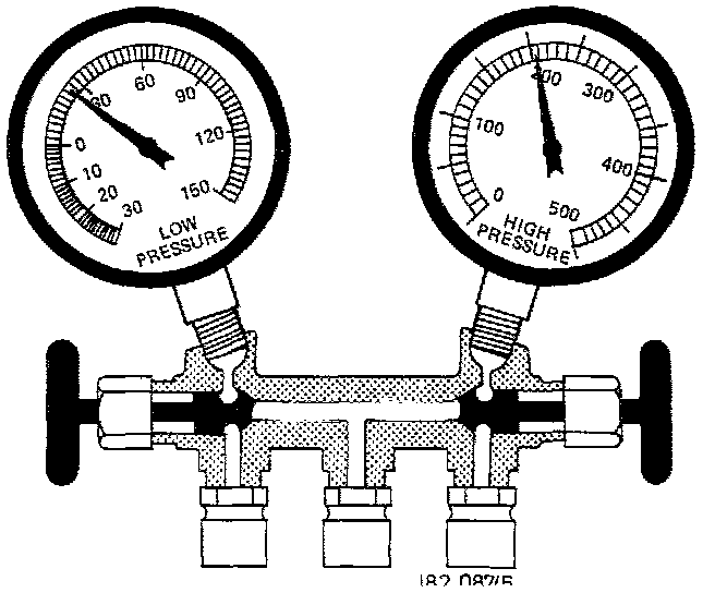 - The high side gauge reading is normal, but will drop when the low side drops into vacuum.