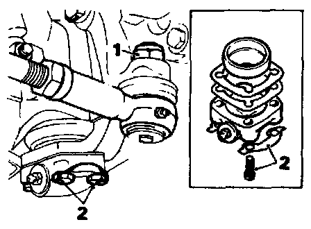 - Remove self-locking nut and washer [1] securing steering tie rod ball-joint.