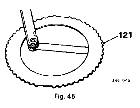 116. Check clutch drum and bearing surfaces for scores or burrs, replace drum if damaged (Fig. 44).
