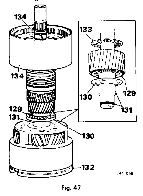 129. Smear the large needle bearing with petroleum jelly and position it on output end of forward sun gear shaft (Fig. 47).