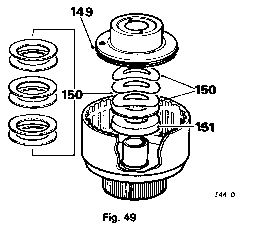 150. Position the Belleville and plain washers in the piston (Fig 49). retain the washers with a smear of petroleum jelly.