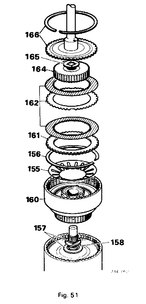 160. Carefully lower the front clutch hub and piston assembly over the shaft and into rear clutch (Fig. 51).