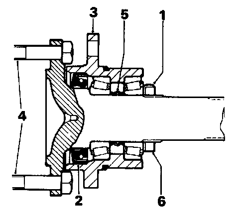 NOTE: Carefully inspect taper roller bearing components before refitting. If any fault is found in either bearing, replace both complete bearings. Never fit new cone and roller assemblies into used cups.