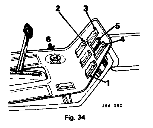 - Raise the cover and disconnect the cigar light cables (6, Fig. 34).