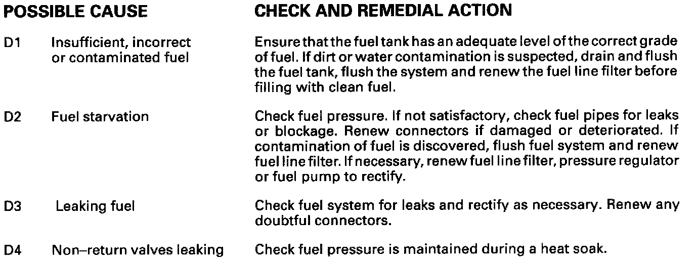 CHART D FUEL SYSTEM CHECKS