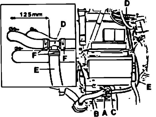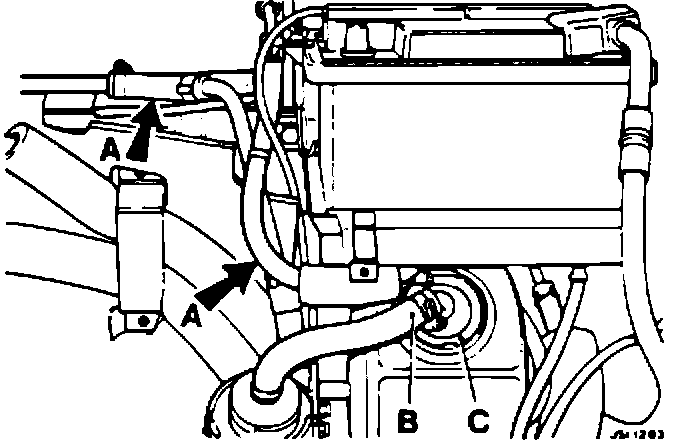 ^ Clamp the hoses to the fuel tank/sump tank hoses in the positions indicated in Fig. 1 A.