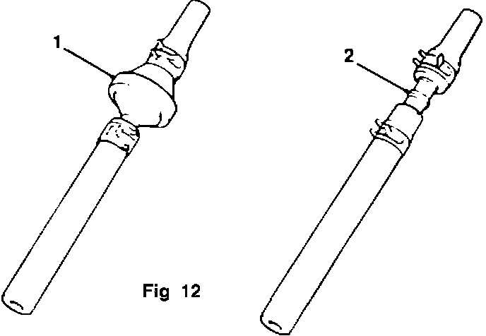 14. Install clamp CAC 8374 to existing stepped hose and clamp CAC 8772 to existing straight hose. Insert straight connector EEC 8593 (2, Fig 12) and reposition clamps to secure.