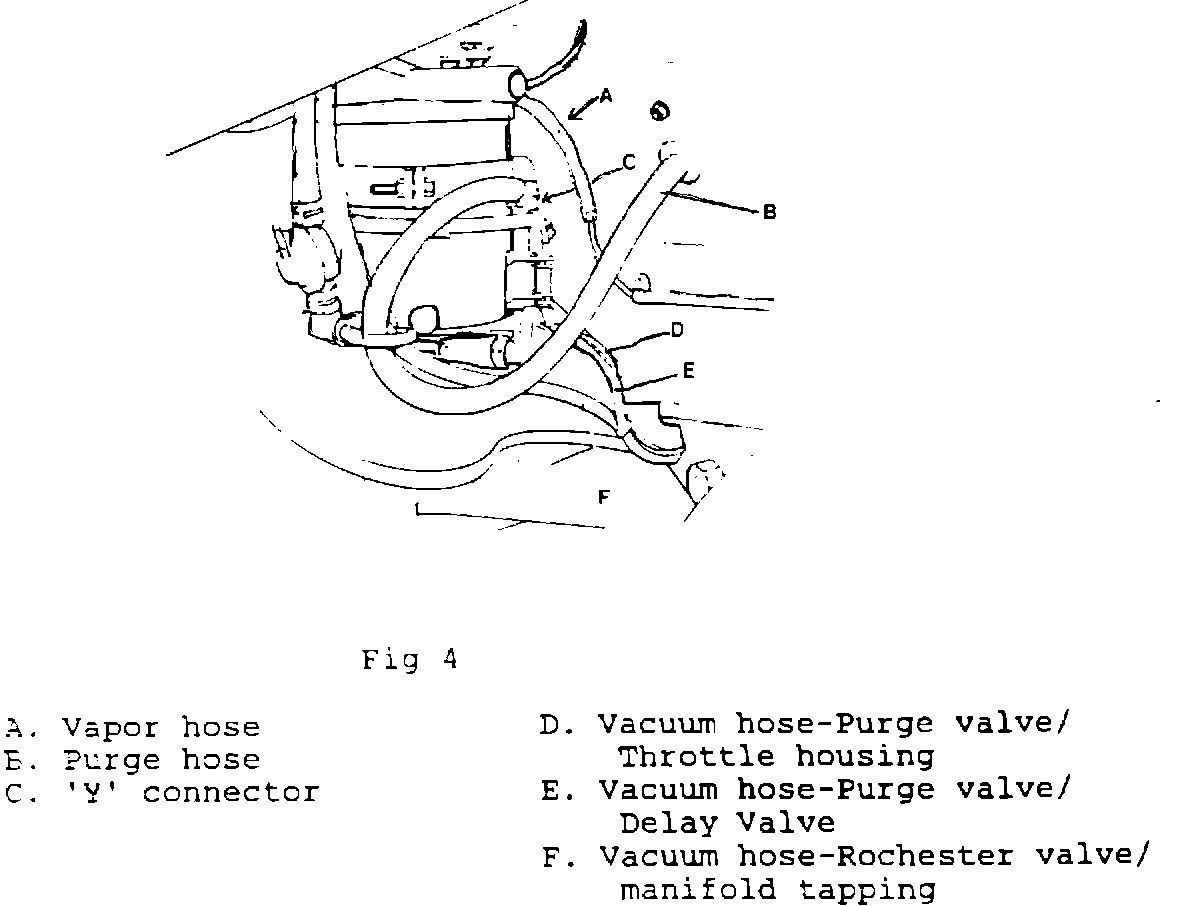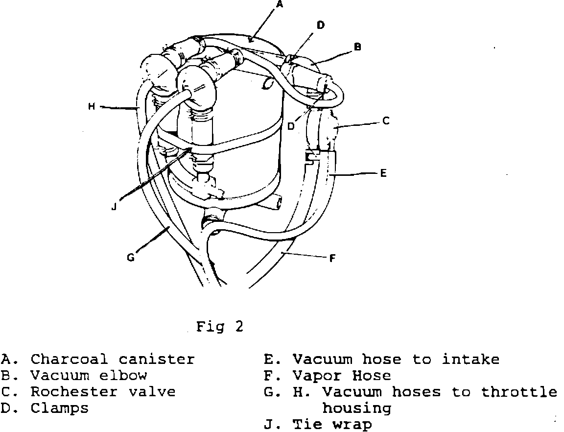 9. Connect the end of the Rochester valve CBC 7714 (C, Fig 2) marked "CAN" to the elbow, reposition clamp to secure.