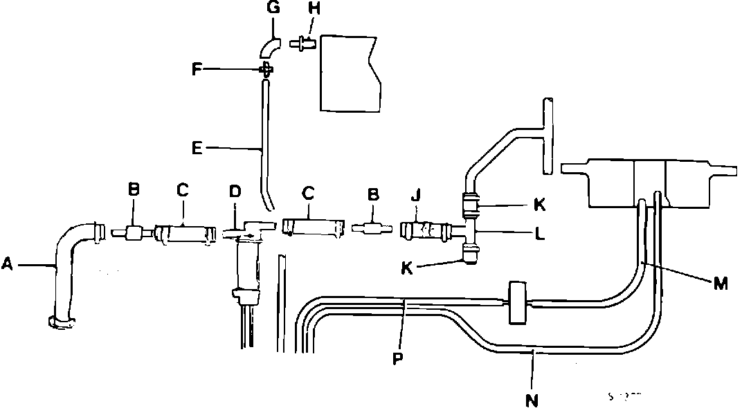 EAC 8022/38 (N, Fig 8) from rear stub pipe on "B" bank throttle housing to purge valve.