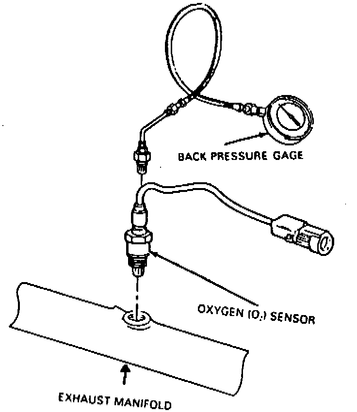 2. Install Borroughs exhaust backpressure tester (BT 8515 or or equivalent in place of oxygen sensor).